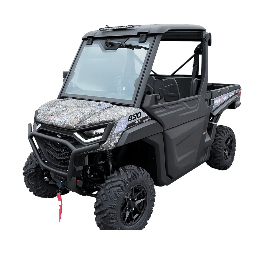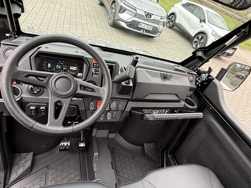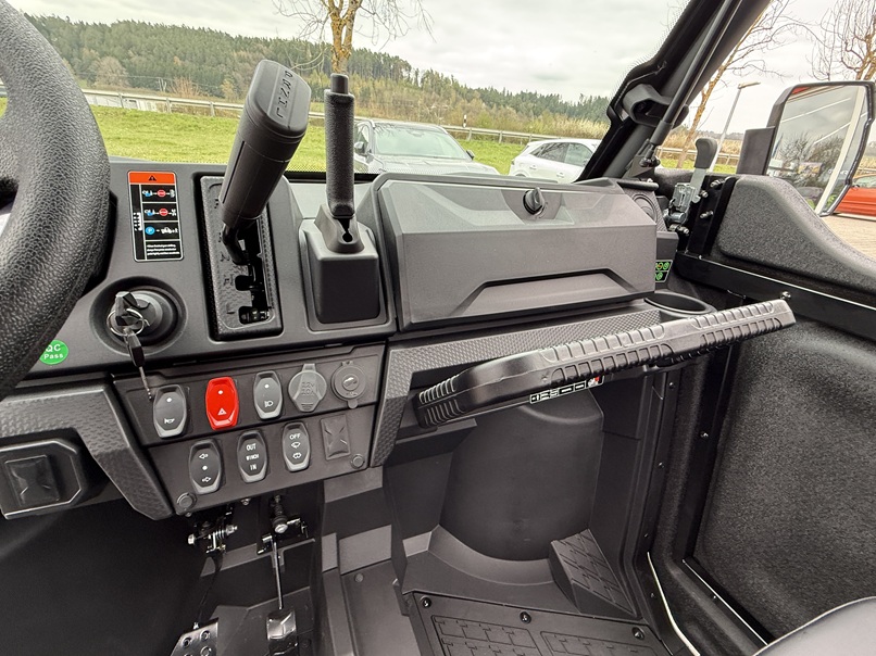 Bereits ab Werk ist die PRO 550 mit einer Frontscheibe und halben Türen ausgestattet, sodass Sie bei jedem Wetter komfortabel unterwegs sind. Der zuschaltbare Allradantrieb in Kombination mit Differenzialsperren sorgt für maximale Traktion, egal ob im Gelände, auf dem Hof oder im Arbeitseinsatz.